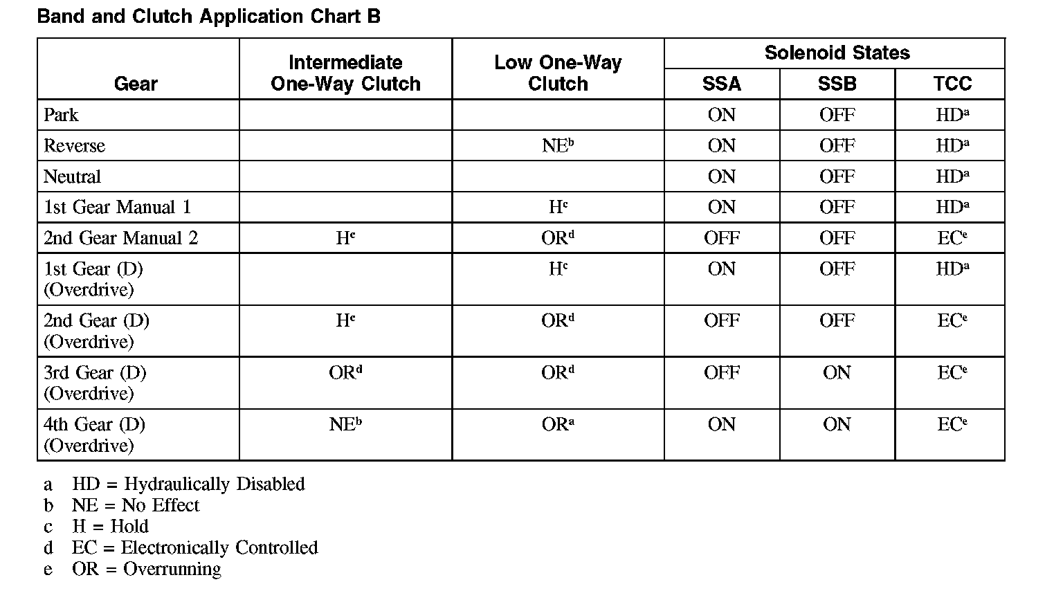 Band and Clutch Application Chart B