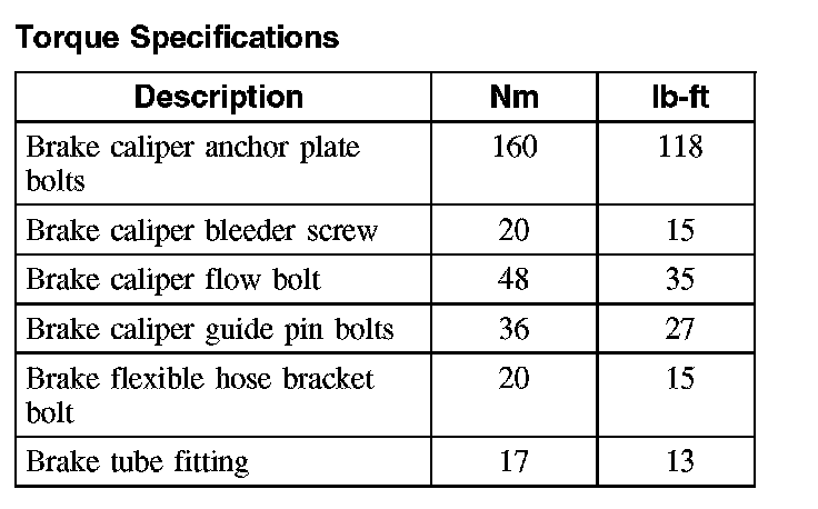 Torque Specifications, Front