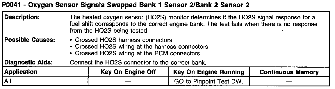 P0041 - Oxygen Sensor Signals Swapped Bank 1 Sensor 2/Bank 2 Sensor 2):