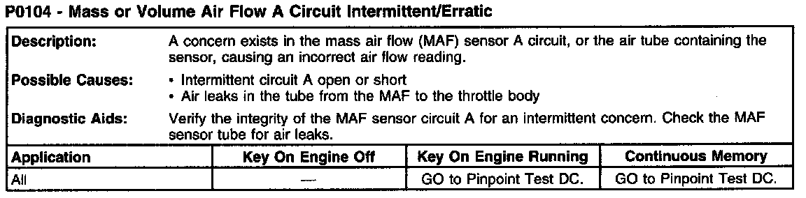 P0104 - Mass Or Volume Air Flow A Circuit Intermittent/Erratic:
