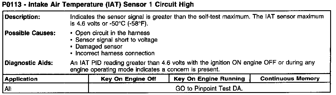 P0113 - Intake Air Temperature (IAT) Sensor 1 Circuit High: