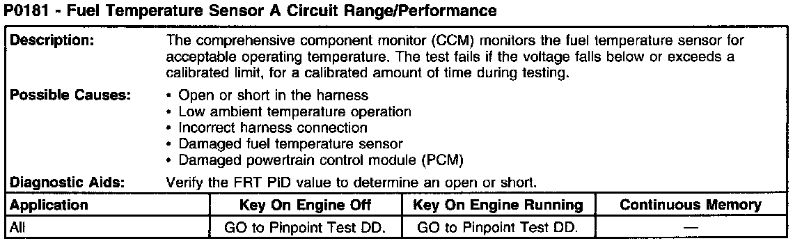 P0181 - Fuel Temperature Sensor A Circuit Range/Performance: