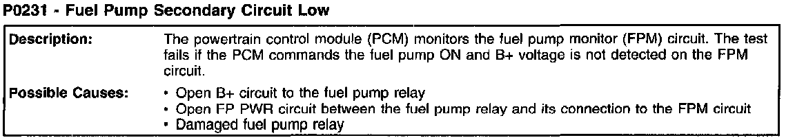 P0231 - Fuel Pump Secondary Circuit Low (Part 2):