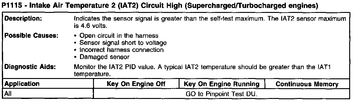 P1115 - Intake Air Temperature 2 (IAT) Circuit High (Supercharged/Turbocharged Engines):