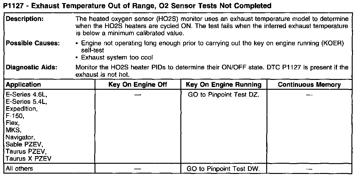 P1127 - Exhaust Temperature Out of Range, O2 Sensor Tests Not Complete: