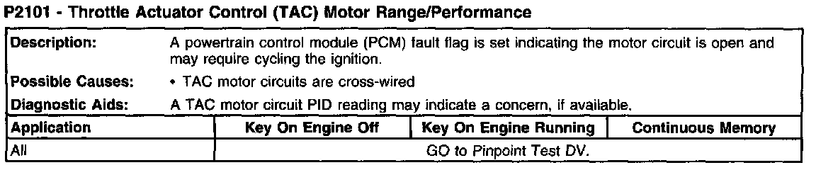 P2101 - Throttle Actuator Control (TAC) Motor Range/Performance: