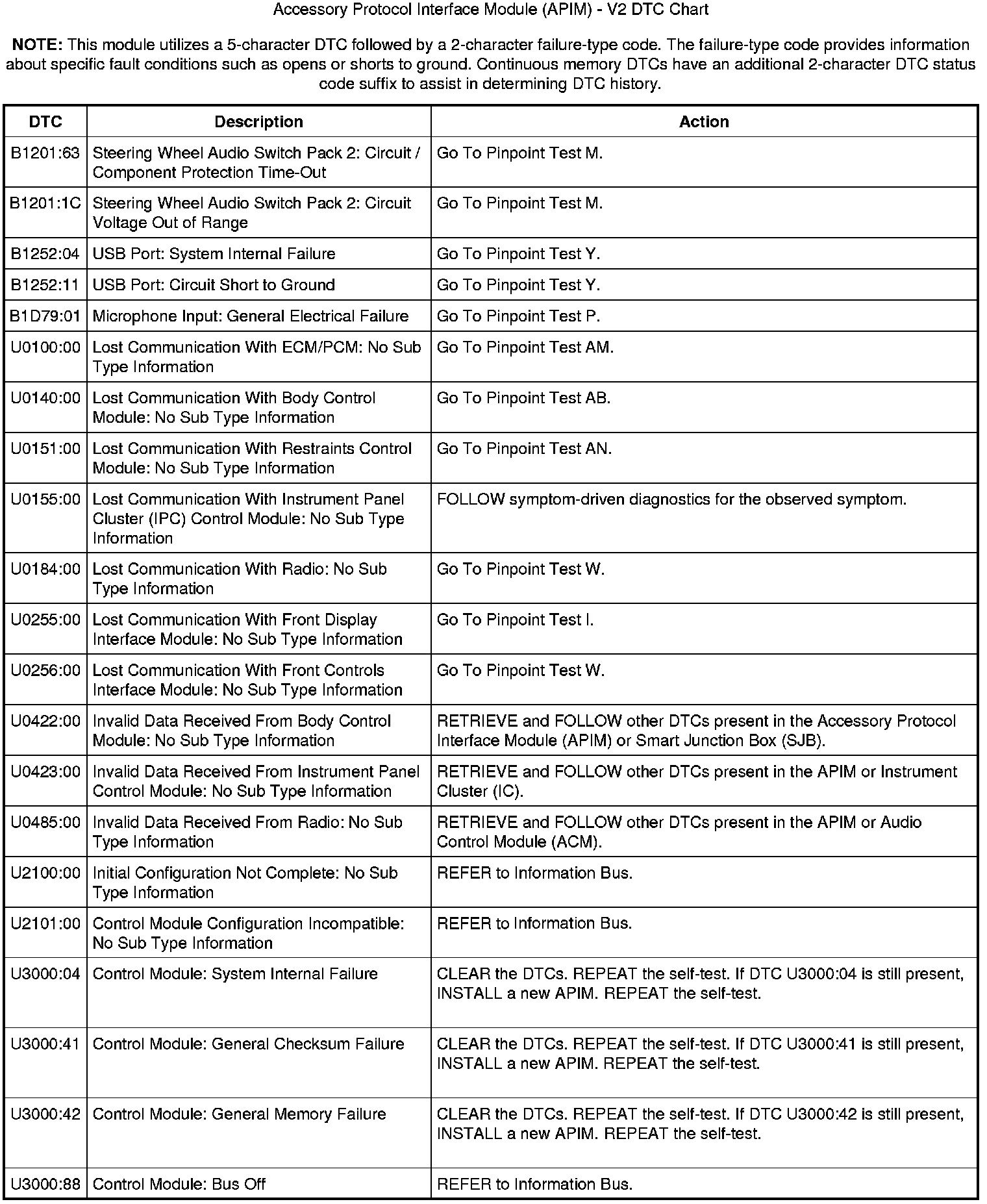 Accessory Protocol Interface Module (APIM) - V2 DTC Chart