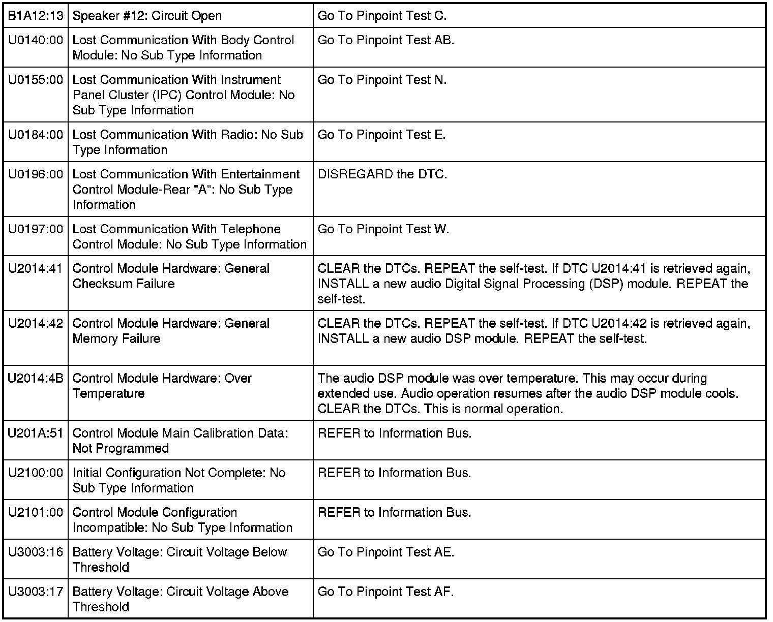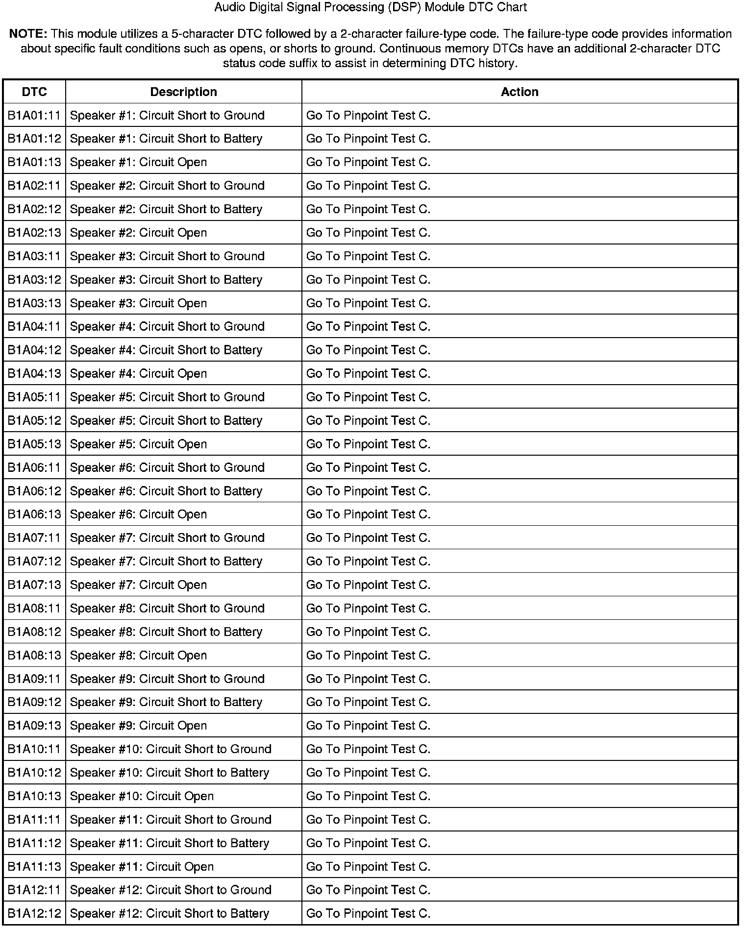 Audio Digital Signal Processing (DSP) Module DTC Chart