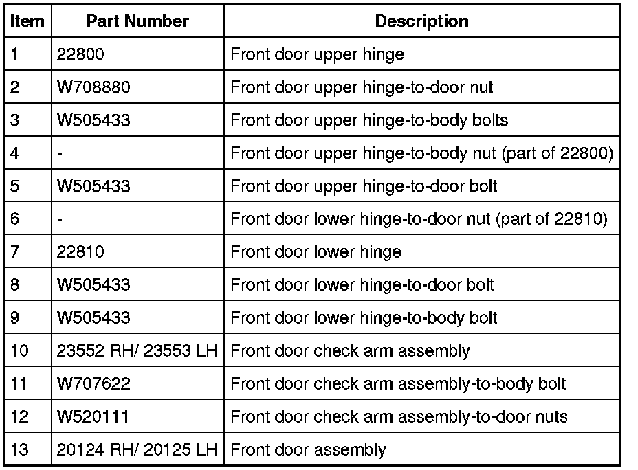 NOTE: Front door shown, rear door similar.