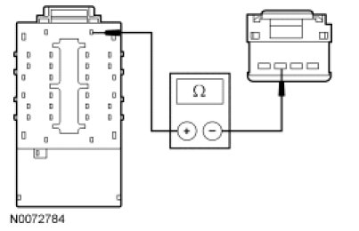 - Measure the resistance between the luggage compartment lid latch C429-4, circuit GD149 (BK/GY), harness side and ground.