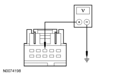 - Measure the voltage between LH exterior mirror C516-13, circuit LRD12 (BU/GY), harness side and LH exterior mirror C516-14, circuit RRD12 (BN), harness side.