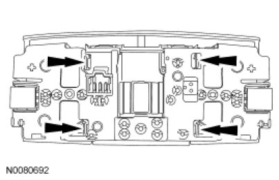 2. Release the 2 front tabs and remove the light assembly from the overhead console.