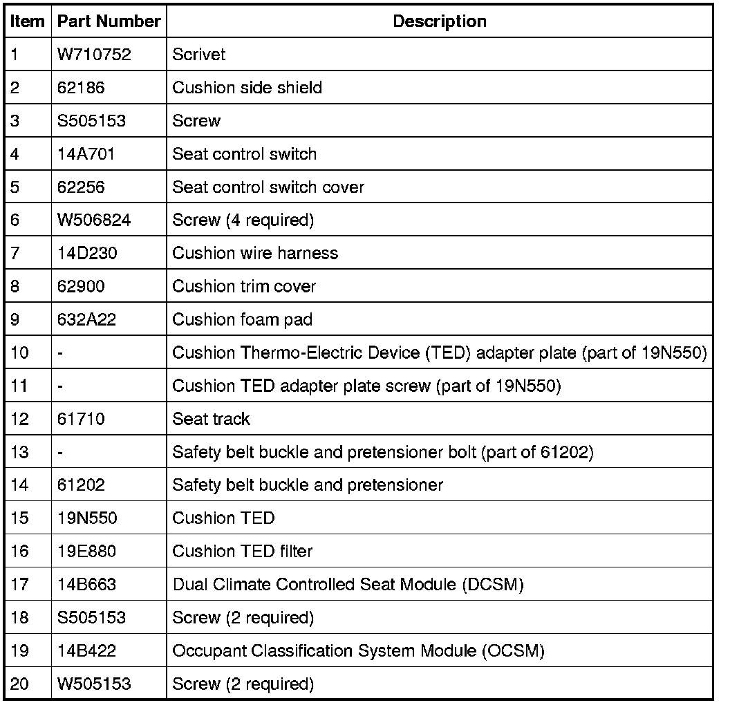 Seat - Exploded View, Front