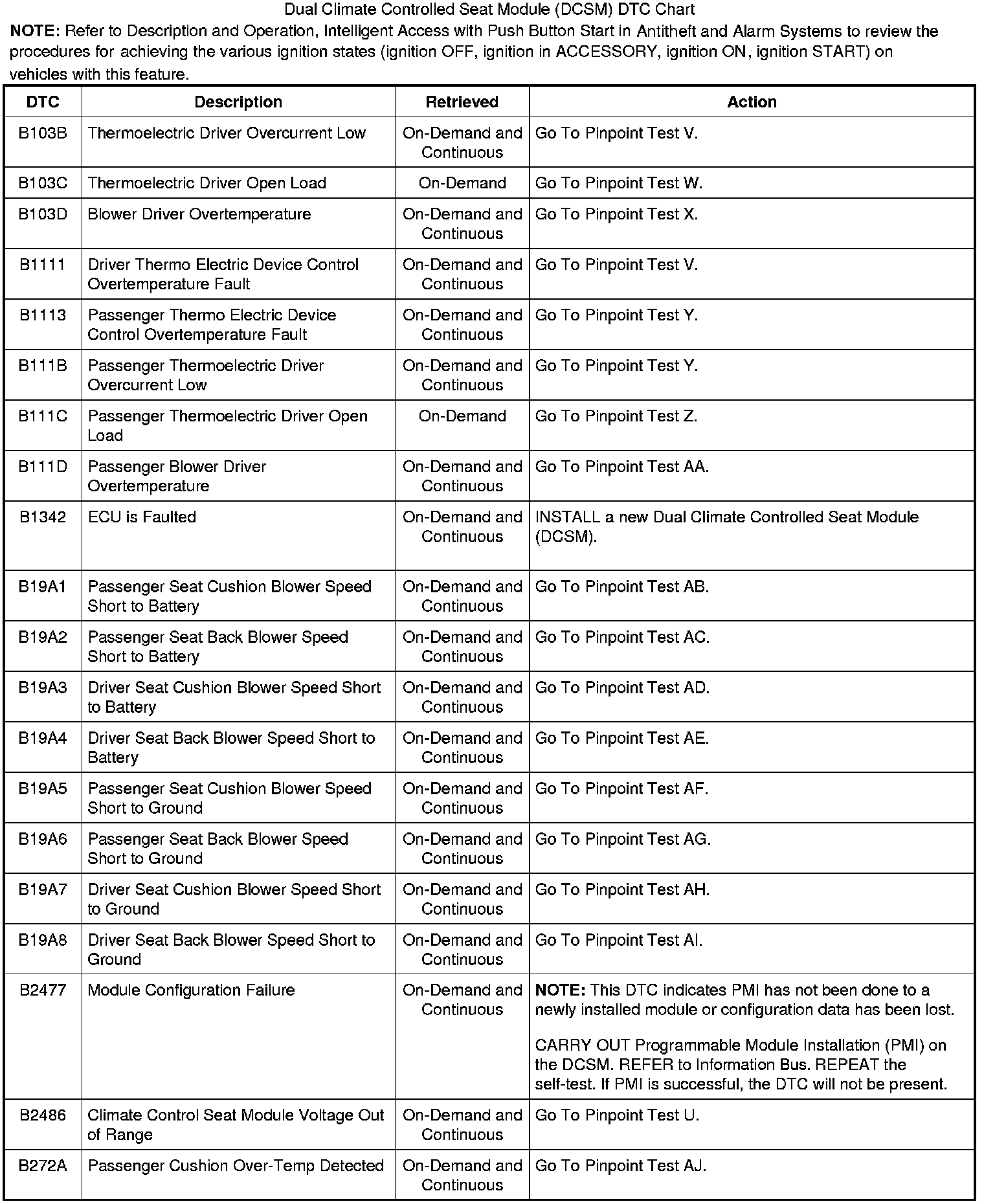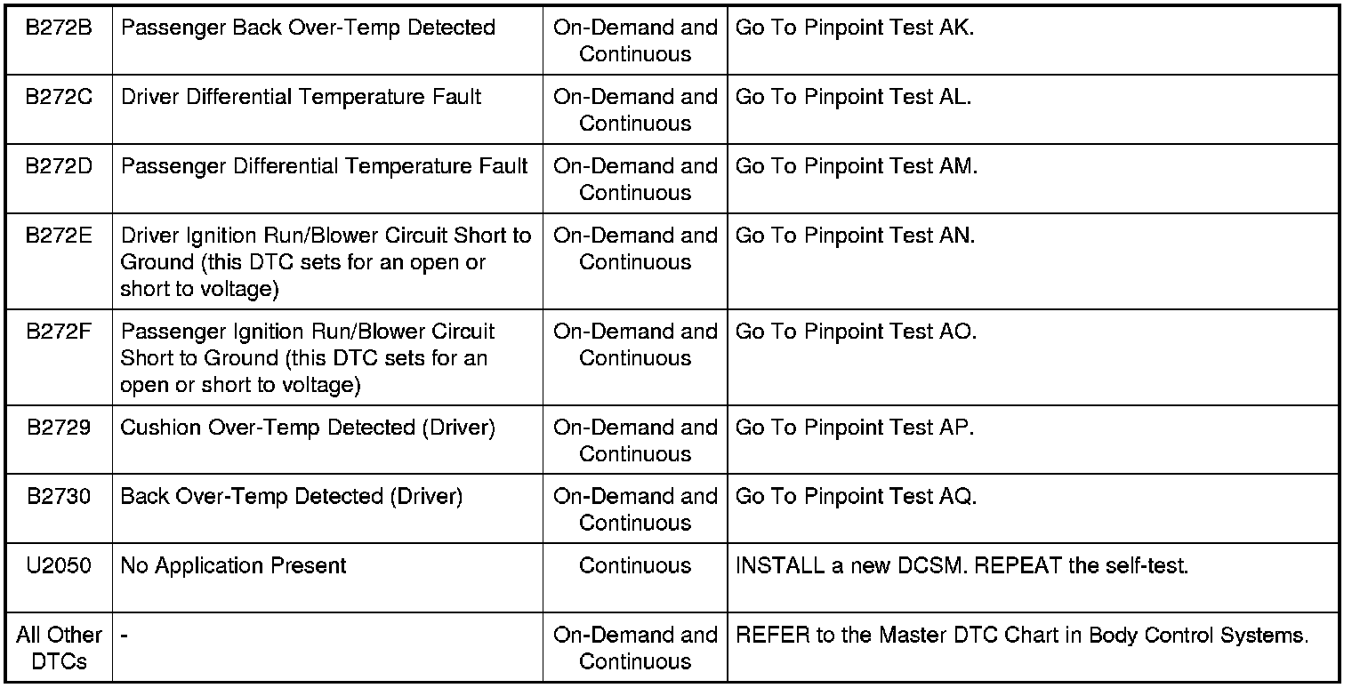 Dual Climate Controlled Seat Module (DCSM) DTC Chart