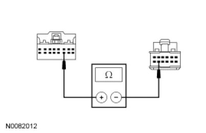 - Measure the resistance between the PCM C175b-57, circuit RES08 (GN/BN), harness side and the clockspring C218a-14, circuit RES08 (GN/BN), harness side.