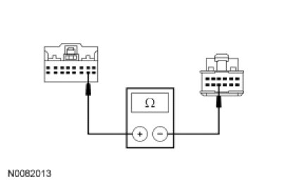 - Measure the resistance between the clockspring C218a pin 14, component side and the clockspring C218b pin 8, component side.