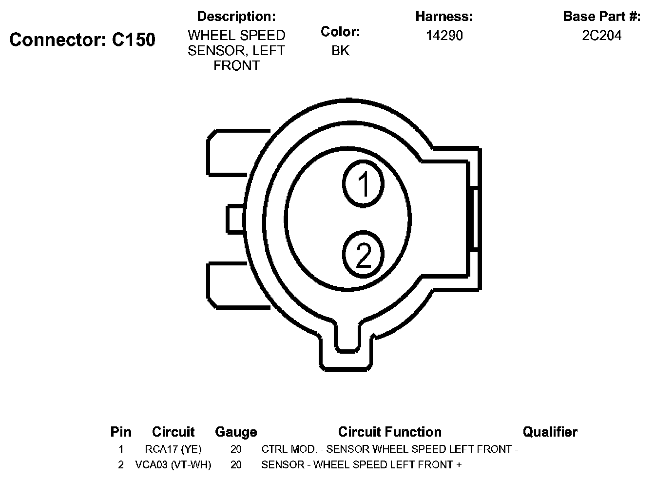 Wheel Speed Sensor, Left Front