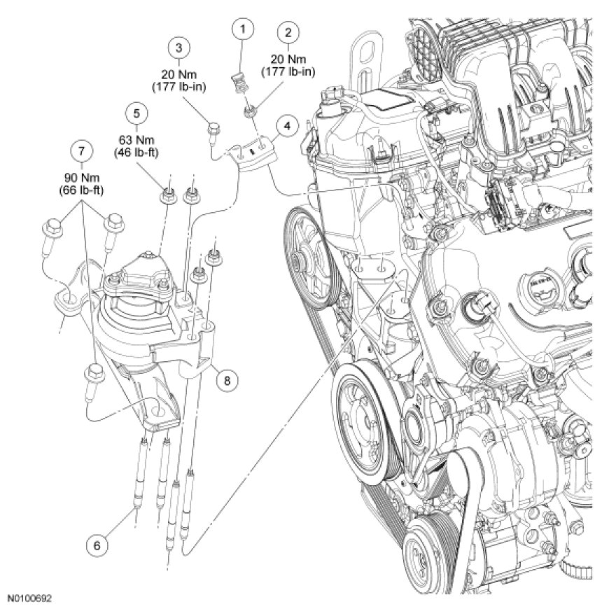 - Tighten to 63 Nm (46 lb-ft).