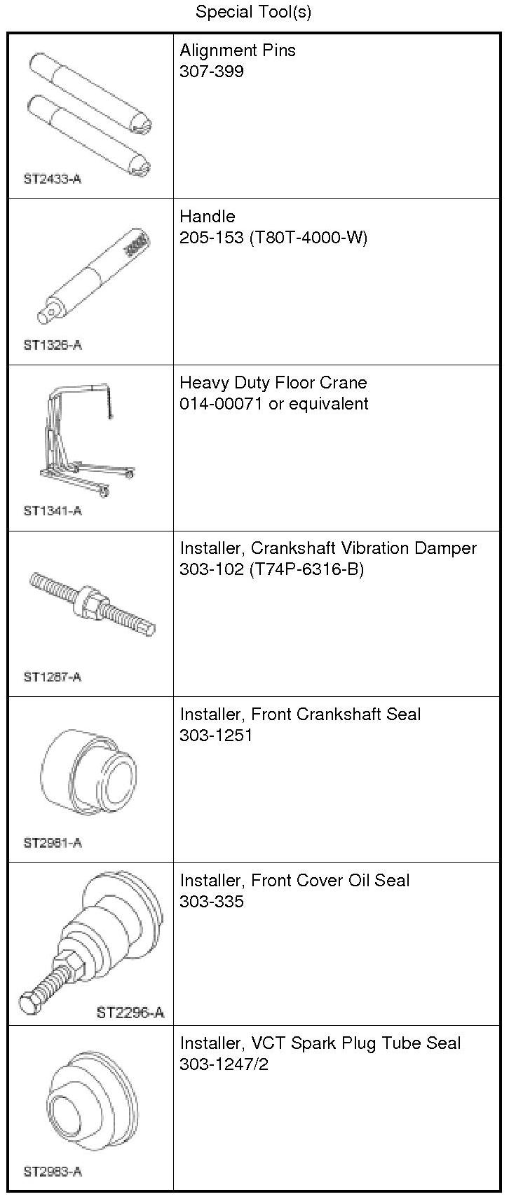 Using the VCT Spark Plug Tube Seal Installer and Handle, install new VCT solenoid and/or spark plug tube seals.
