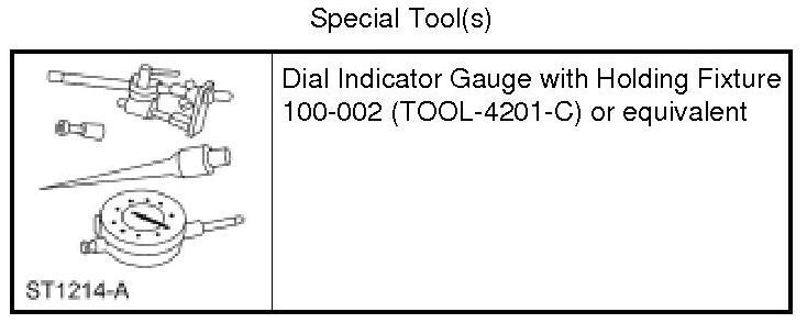 1. Using the Dial Indicator Gauge with Holding Fixture, measure the camshaft end play.