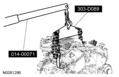 1. Using the Heavy Duty Floor Crane and Spreader Bar, align the transaxle to the engine.