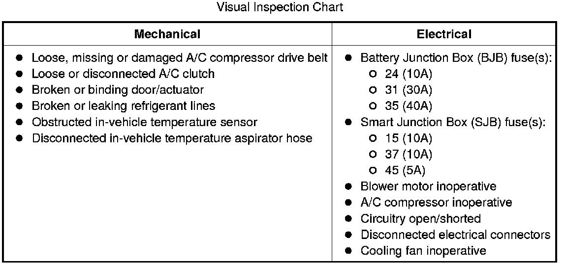 If the HVAC DTCs retrieved are related to the concern, go to the HVAC Module DTC Chart. If the PCM DTCs retrieved are related to the concern, go to the PCM DTC Chart. For all other DTCs, refer to Body Control Systems. HVAC Module DTC Chart PCM DTC Chart
