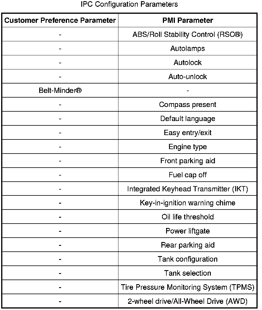 NOTE: When installing a new Instrument Panel Cluster (IPC), it is necessary to upload the module configuration to the scan tool. Following installation of the IPC, download the module configuration from the scan tool into the new IPC. Refer to Information Bus to carry out the Programmable Module Installation (PMI). On vehicles equipped without Intelligent Access (IA), it is also necessary to carry out a parameter reset procedure whenever a new IPC or PCM is installed. Refer to Antitheft and Alarm Systems. Programming and Relearning Programming and Relearning