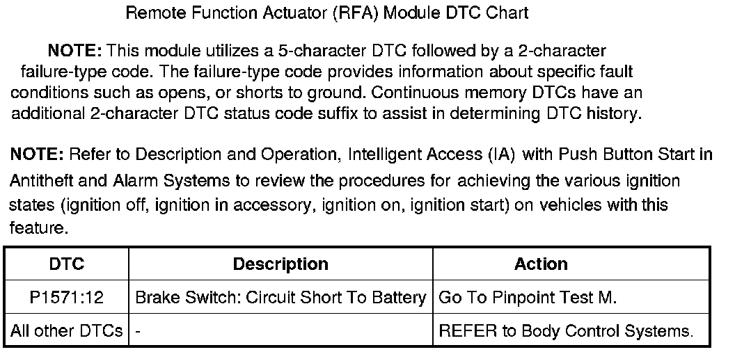 Remote Function Actuator (RFA) Module DTC Chart