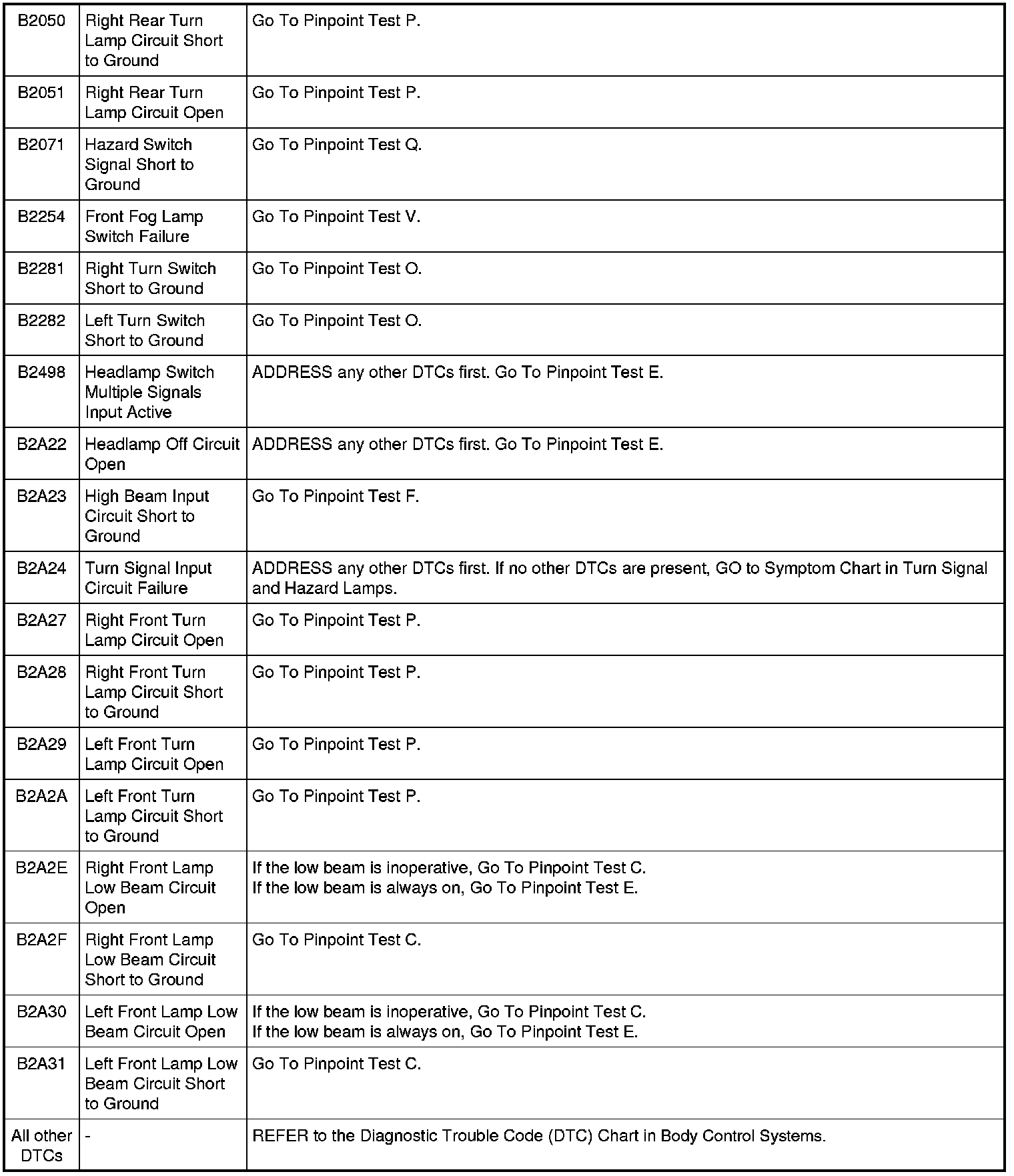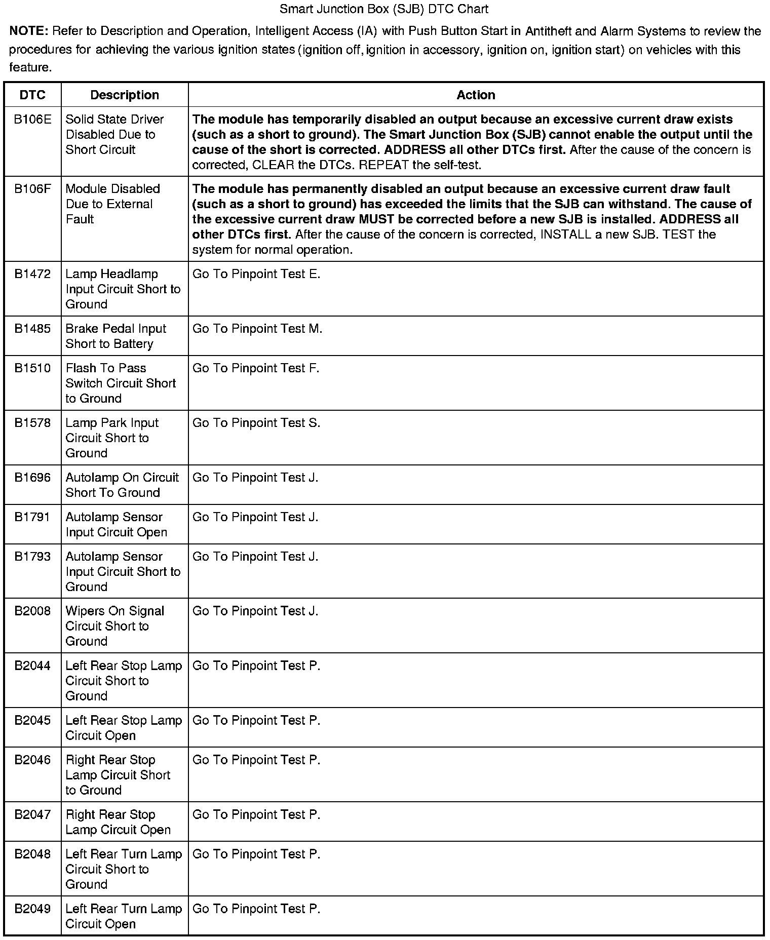 Smart Junction Box (SJB) DTC Chart