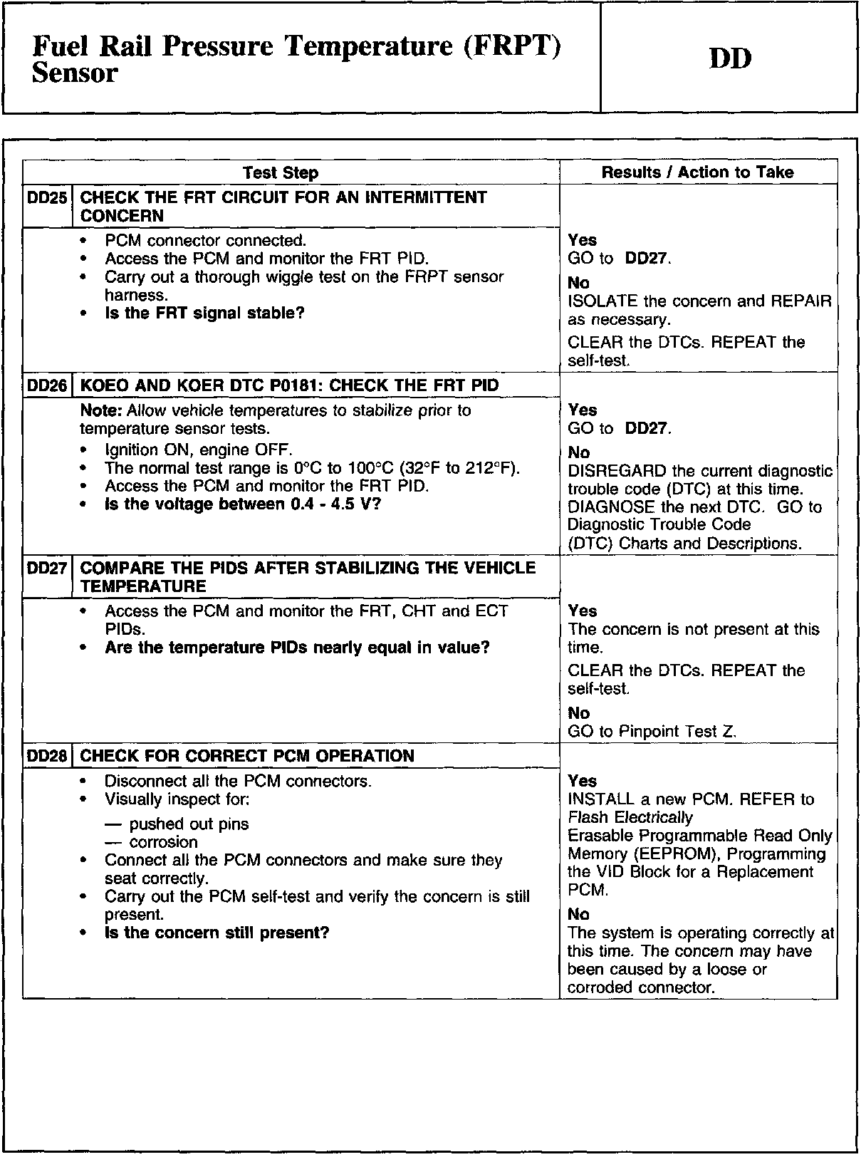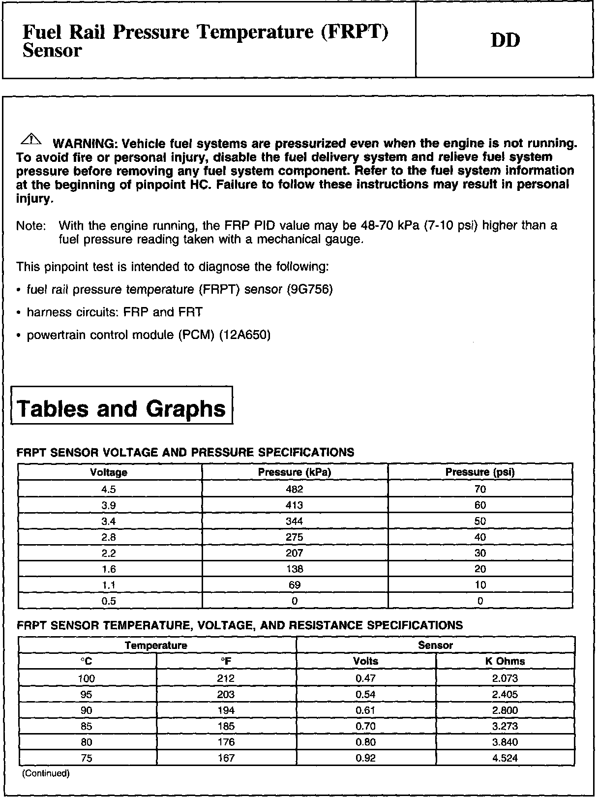 PINPOINT TEST DD: FUEL RAIL PRESSURE TEMPERATURE (FRPT) SENSORWARNING And Tables And Graphs: