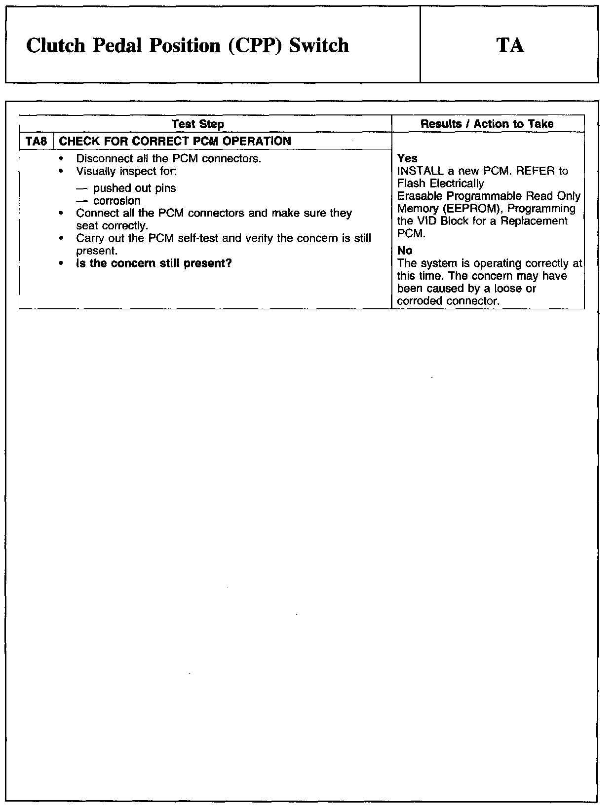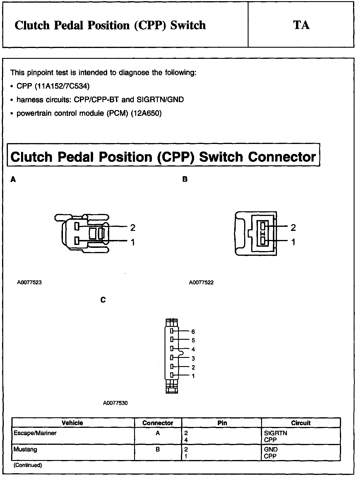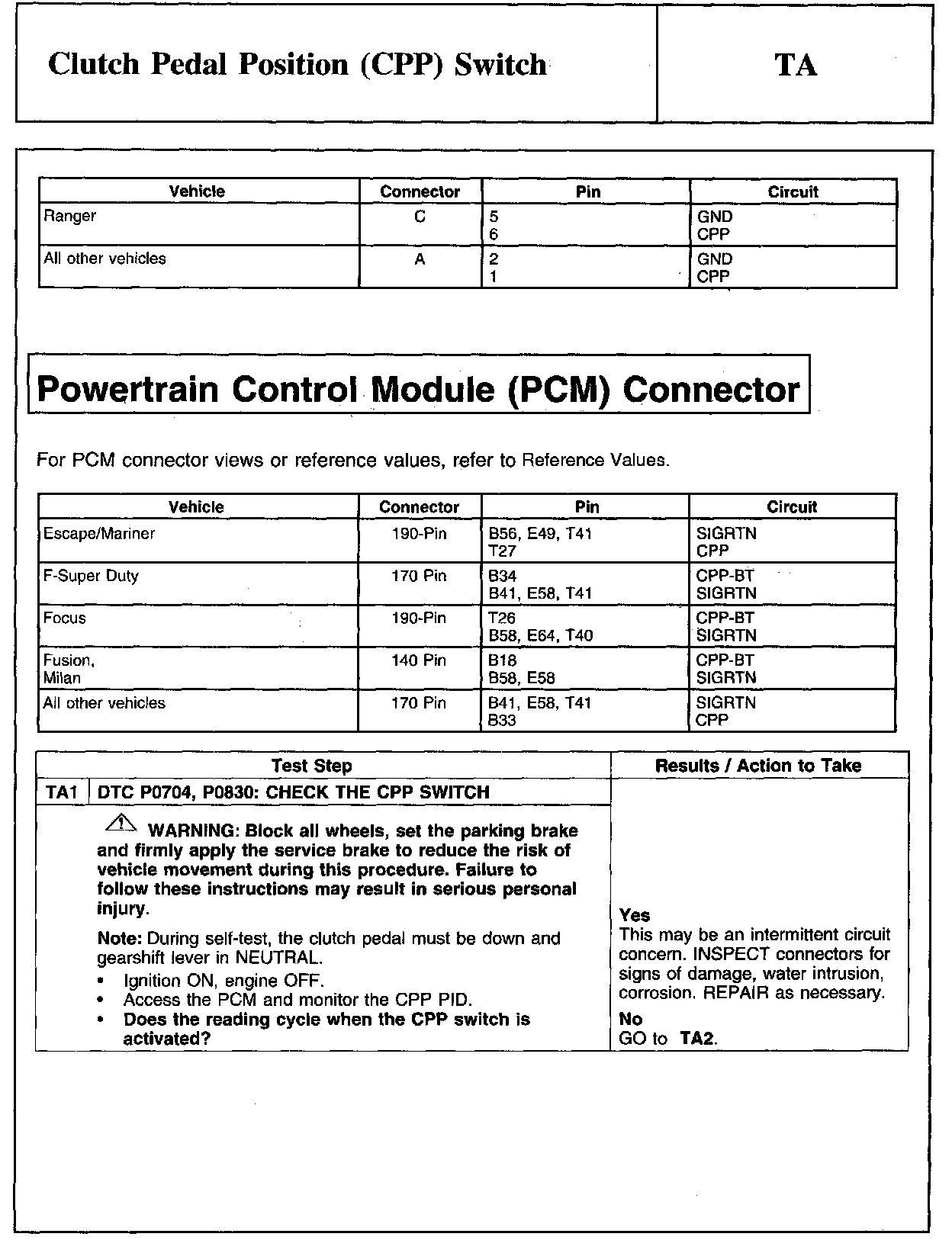 PINPOINT TEST TA: CLUTCH PEDAL POSITION (CPP) SWITCH