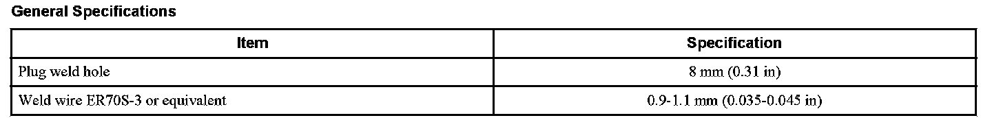 General Specifications - Welding Specifications: