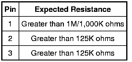 - Measure the resistance between generator C102A, component side and ground. Refer to the following table.