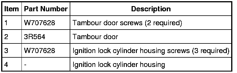 1. Remove the 3 ignition lock cylinder housing screws.