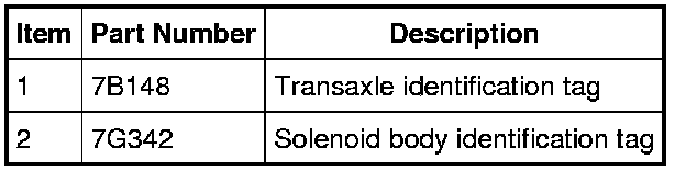 When servicing the solenoid body, use the identification tag located on top of the transaxle case.