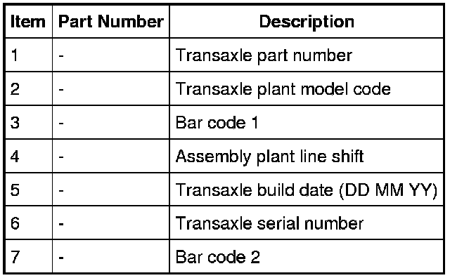 Transaxle Identification Tag