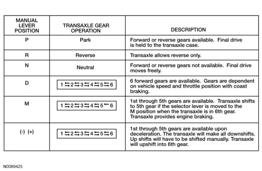 - Moving the selector lever to the forward (-) or backward (+) position will allow the transmission to utilize the Manual Mode for select shifting.