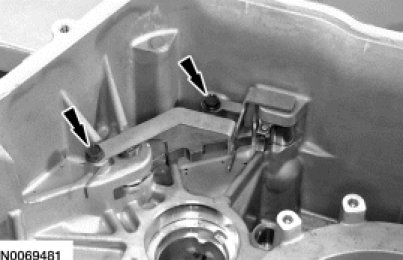 1. Position the park pawl actuating rod in the TR sensor detent plate.