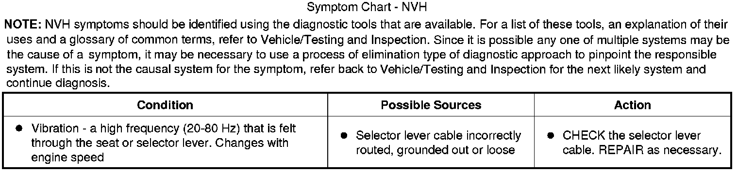 Symptom Chart - NVH: