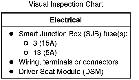 10. If no DTCs related to the concern are retrieved, GO to Symptom Chart. Driver Seat Module (DSM)