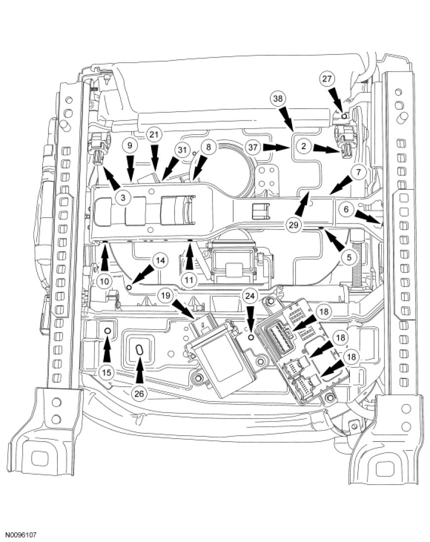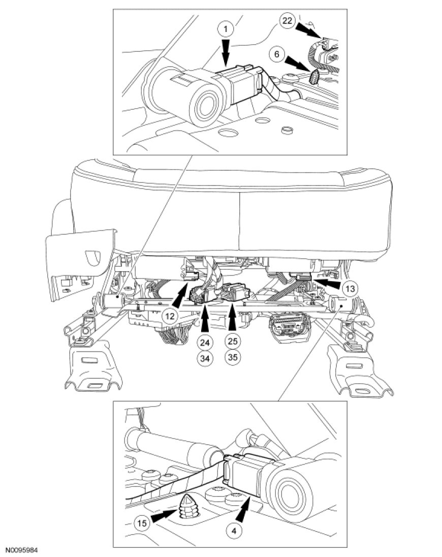 Retainer and Connector Location View, Front of Seat