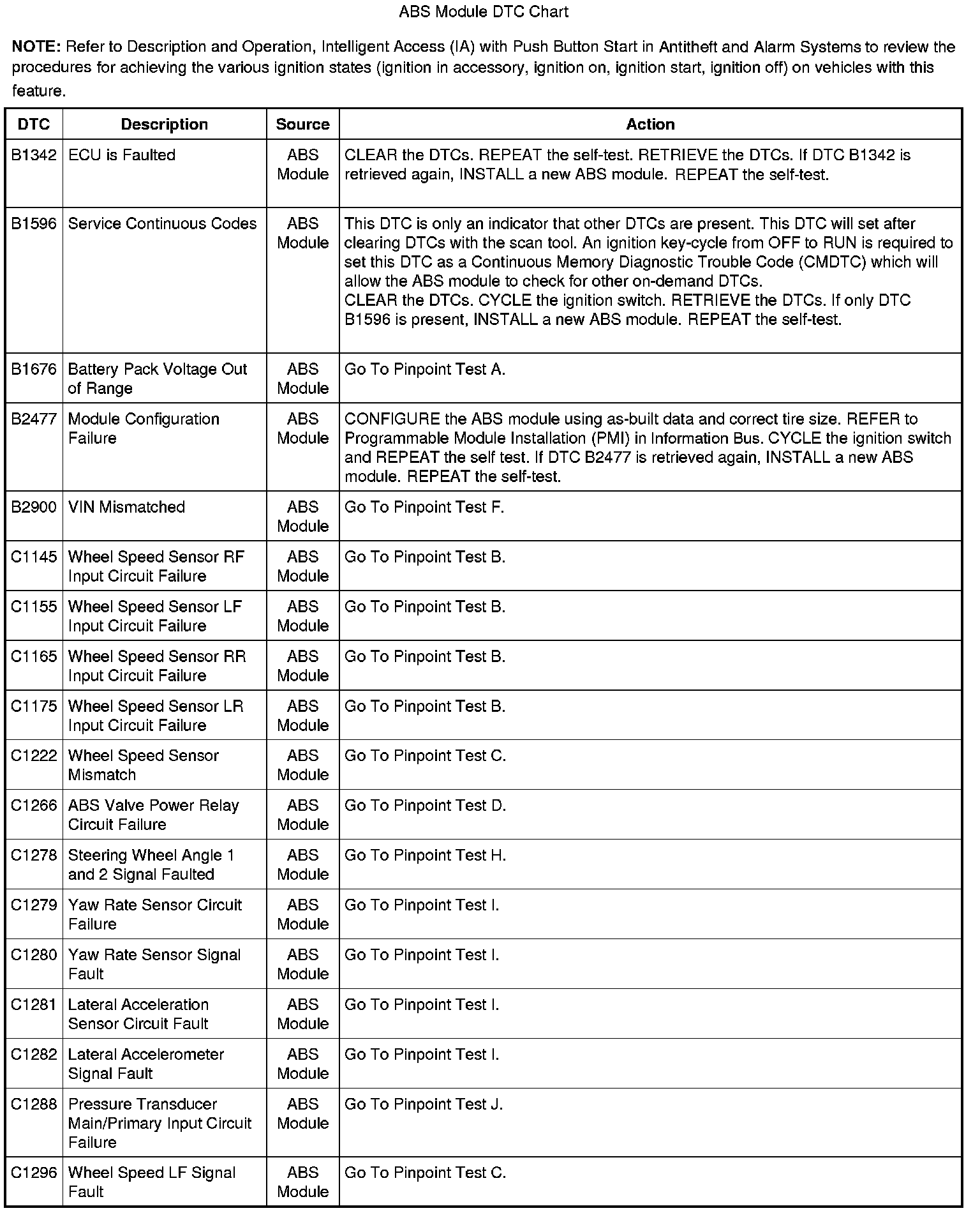 ABS Module DTC Chart
