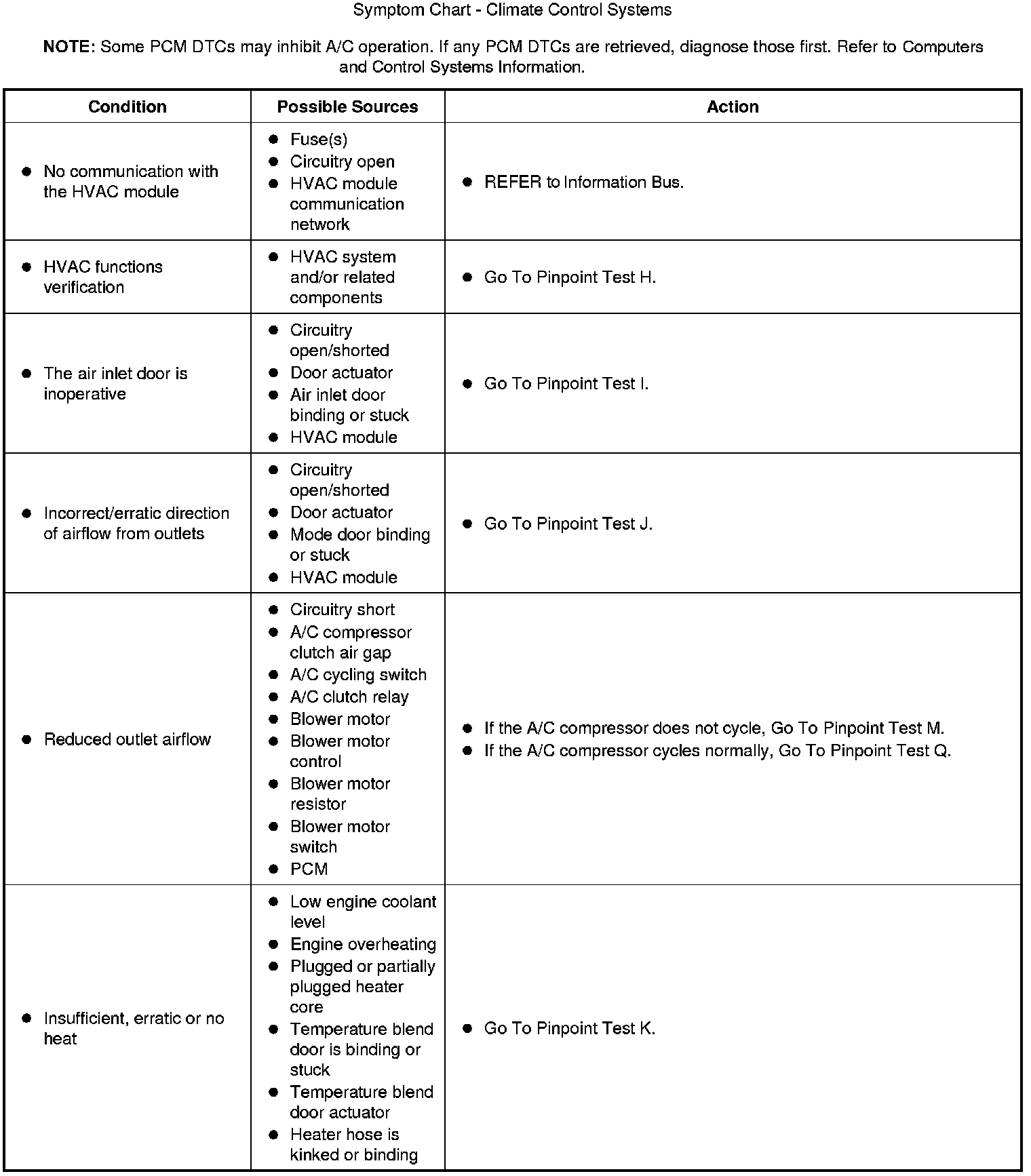 Climate Control SystemSymptom Chart - Climate Control SystemsSymptom Chart - Climate Control Systems (Part 1):
