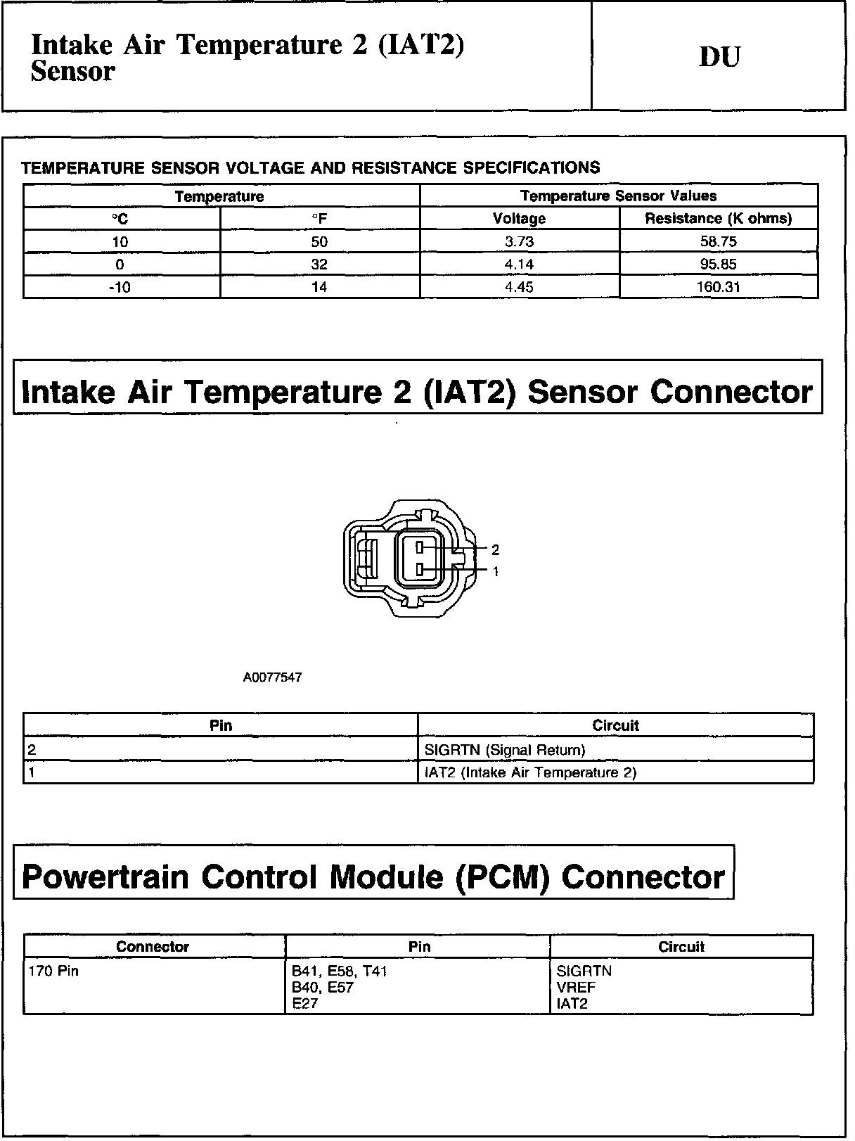 PINPOINT TEST DU: INTAKE AIR TEMPERATURE 2 (IAT2) SENSOR
