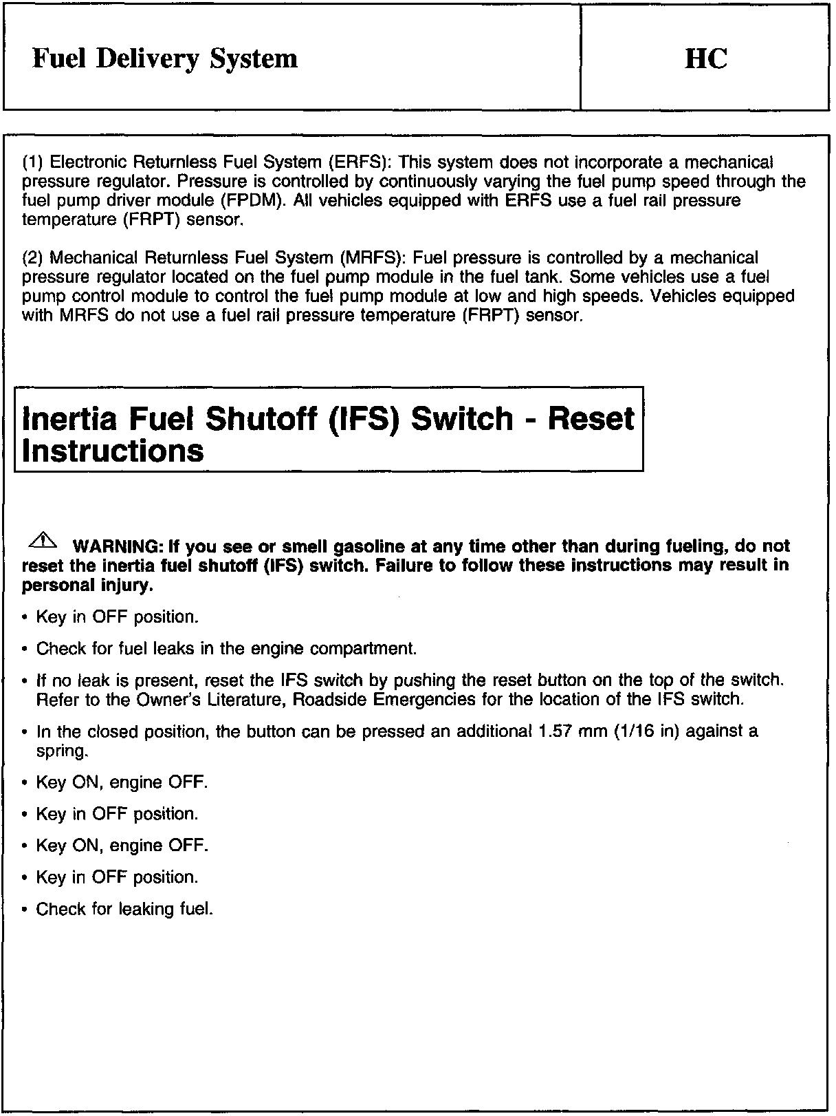 Inertia Fuel Shutoff Switch - Reset Instructions: