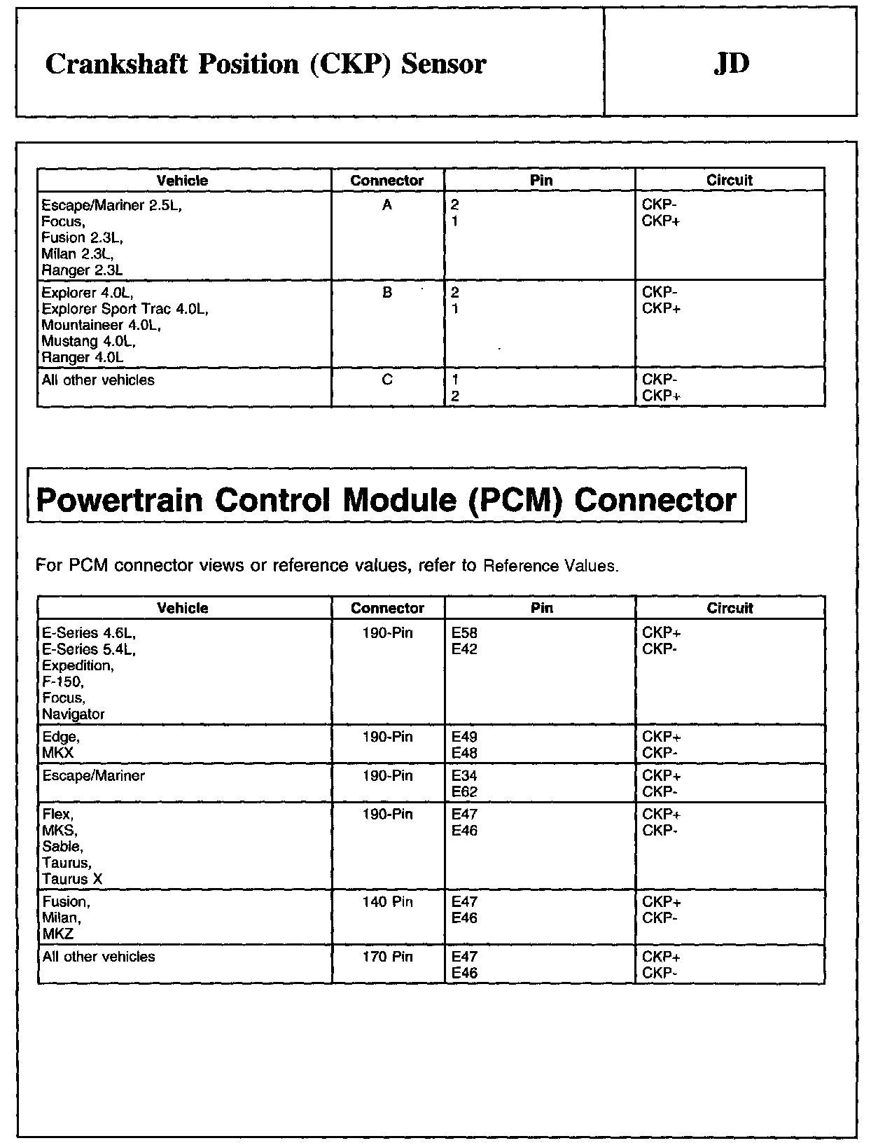 PINPOINT TEST JD: CRANKSHAFT POSITION (CKP) SENSOR