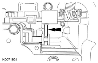 Make sure that the park pawl actuator rod does not become disengaged from the park pawl and the abutment by keeping the end of the park pawl actuator rod behind the machined valve body mating surface of the transaxle case. If the park pawl actuator rod becomes disengaged from the park pawl and the abutment, transaxle removal and disassembly is required to reinstall the actuator rod.