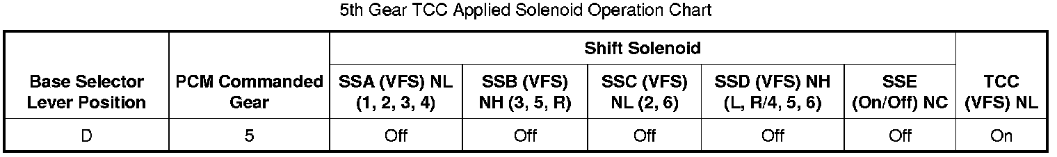 5th Gear Torque Converter Clutch (TCC) Applied