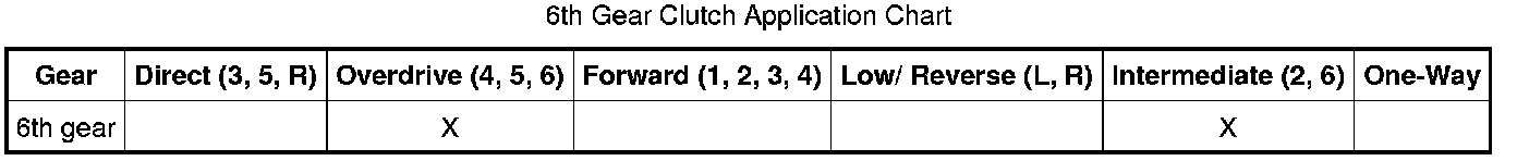 - SSC applies pressure to the intermediate (2, 6) clutch regulator valve to apply the direct (2, 6) clutch.