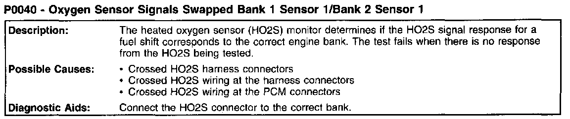 P0040 - Oxygen Sensor Signals Swapped Bank 1 Sensor 1/Bank 2 Sensor 1) (Part 1):